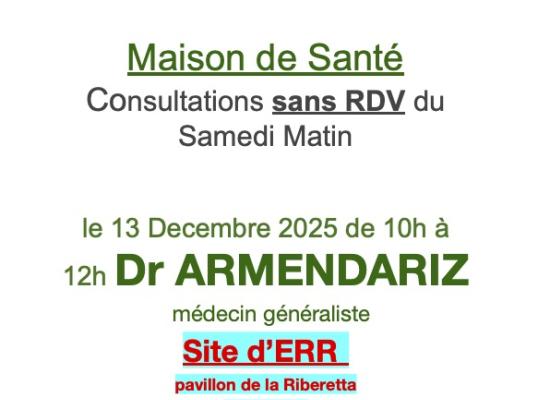 CONSULTATION SANS RDV DU SAMEDI 13 DECEMBRE DE 10H À 12H SITE DE ERR