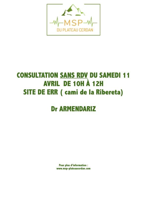 CONSULTATION SANS RDV DU SAMEDI 11 AVRIL DE 10H À 12H SITE DE ERR