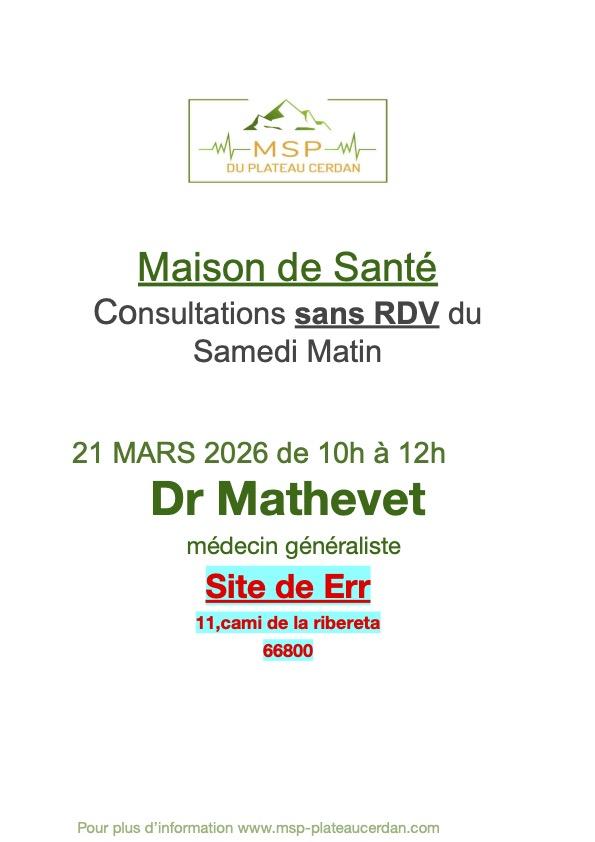 CONSULTATION SANS RDV DU SAMEDI 21 MARS DE 10H À 12H SITE DE ERR